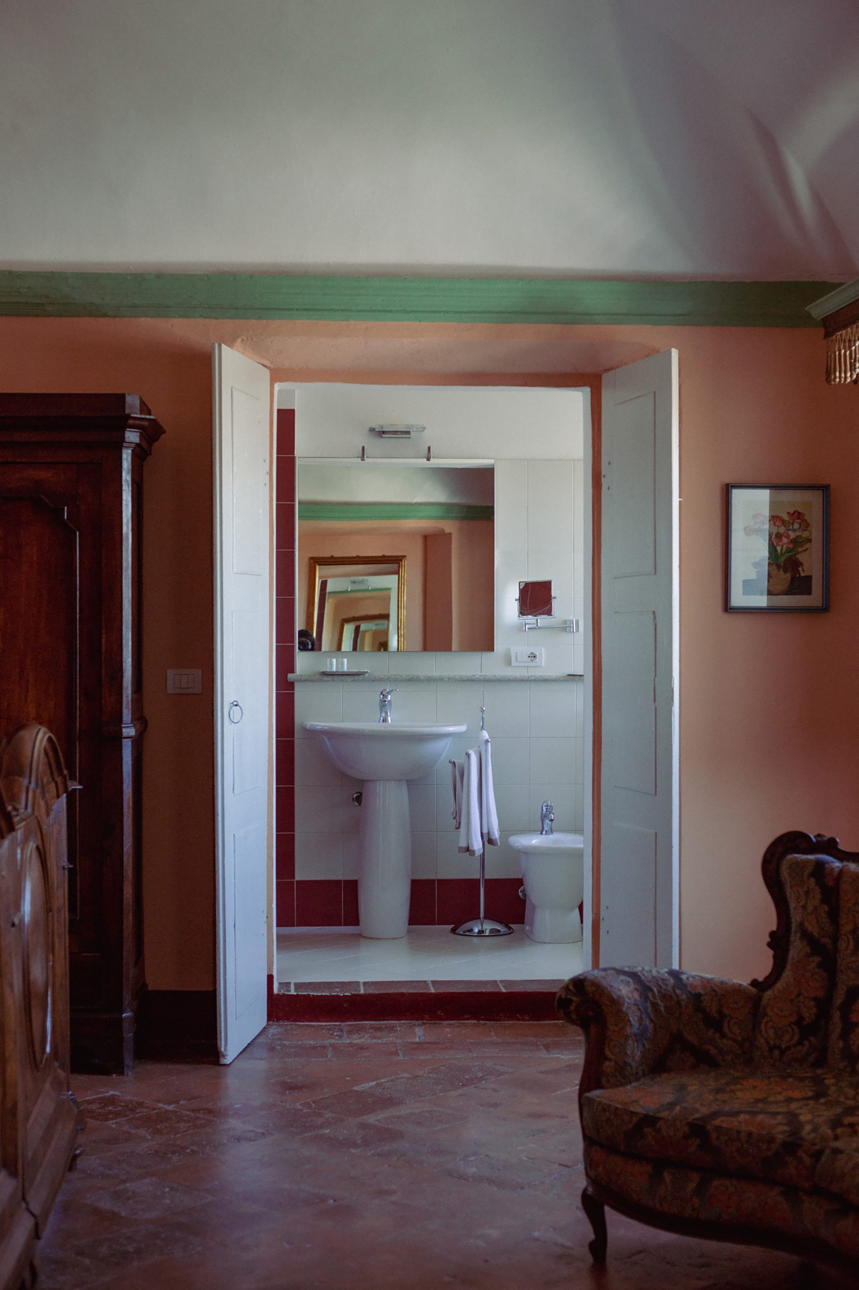 Situata al secondo e ultimo piano del Castello, questa ampia stanza matrimoniale con angolo salotto è illuminata da due finestre affacciate a Nord verso a Valle del Tanaro e la Langa astigiana. Il comodo bagno è dotato di un’ampia doccia.